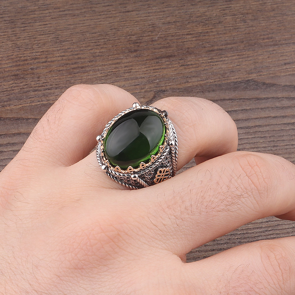 Yeşil Oniks Taşlı 925 Ayar Erkek Gümüş Yüzük