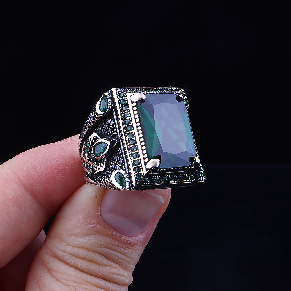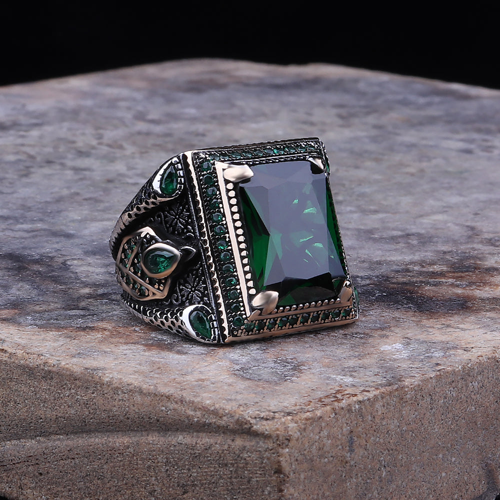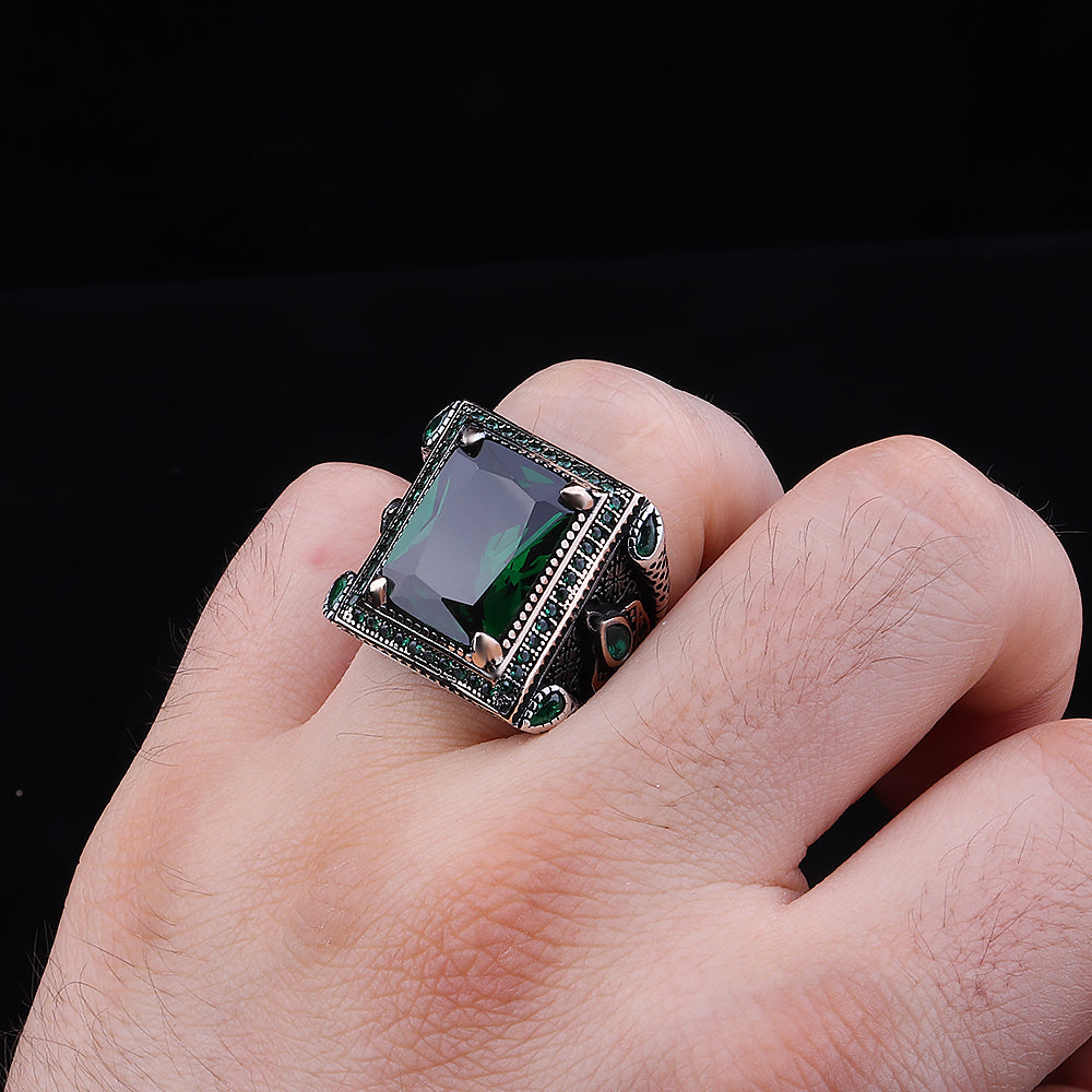 Yeşil Zirkon Taşlı 925 Ayar Gümüş Erkek Yüzüğü