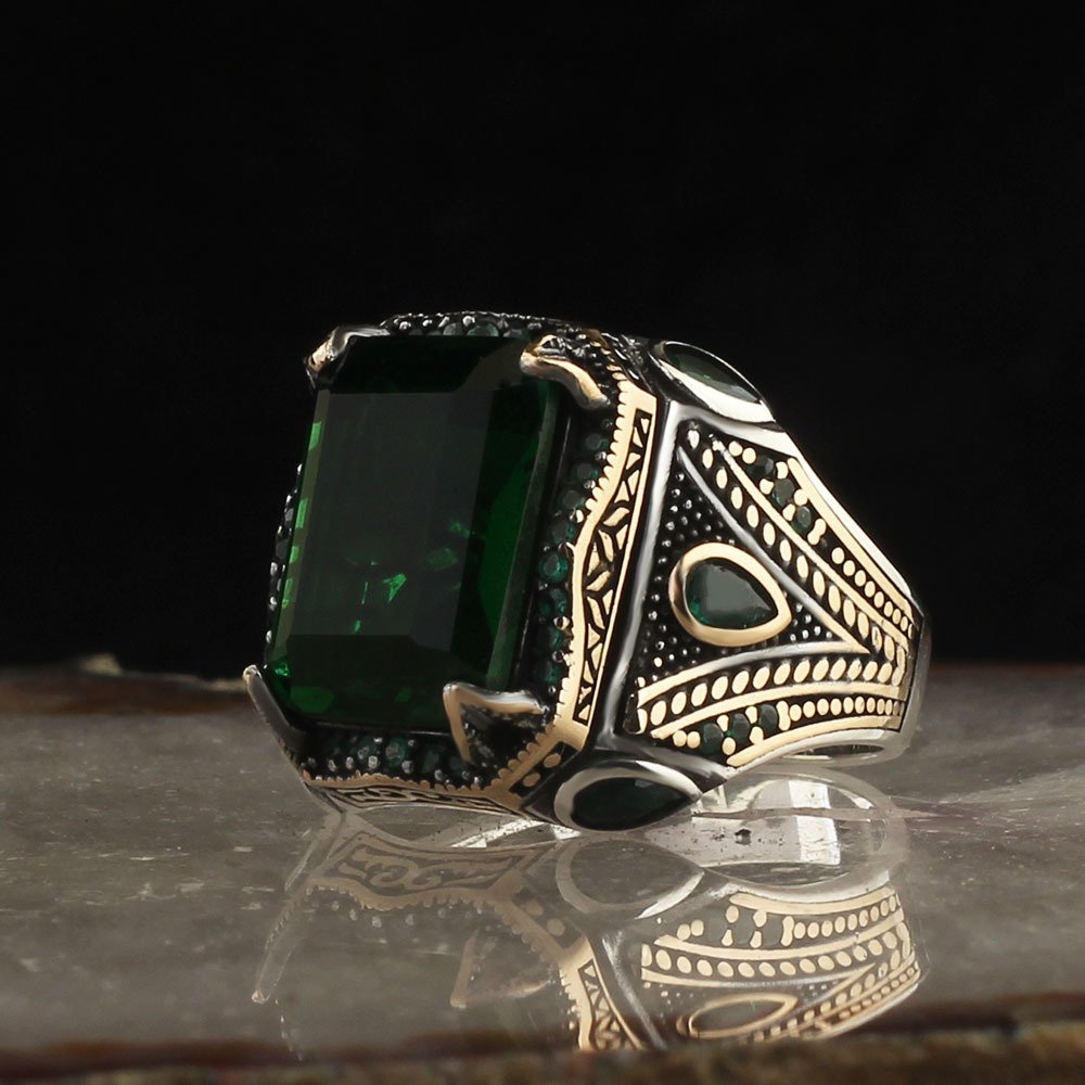Yeşil Zirkon Taşlı 925 Ayar Gümüş Erkek Yüzük