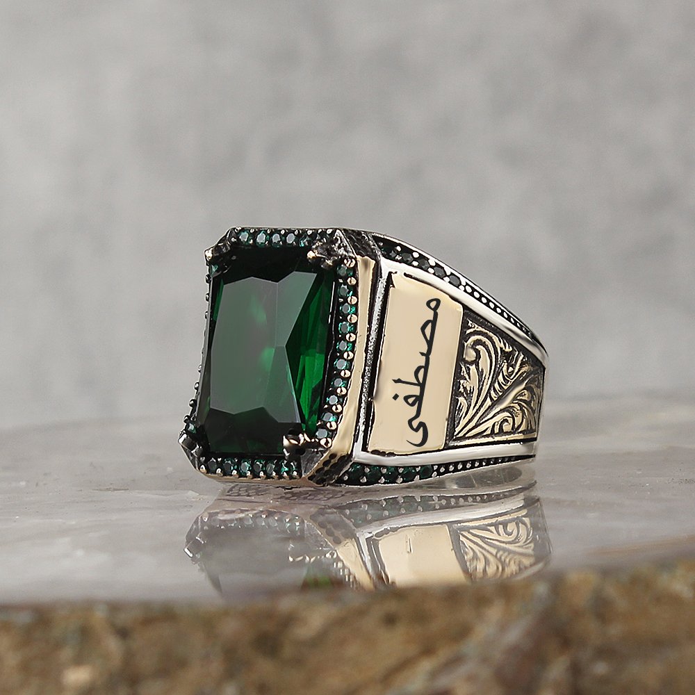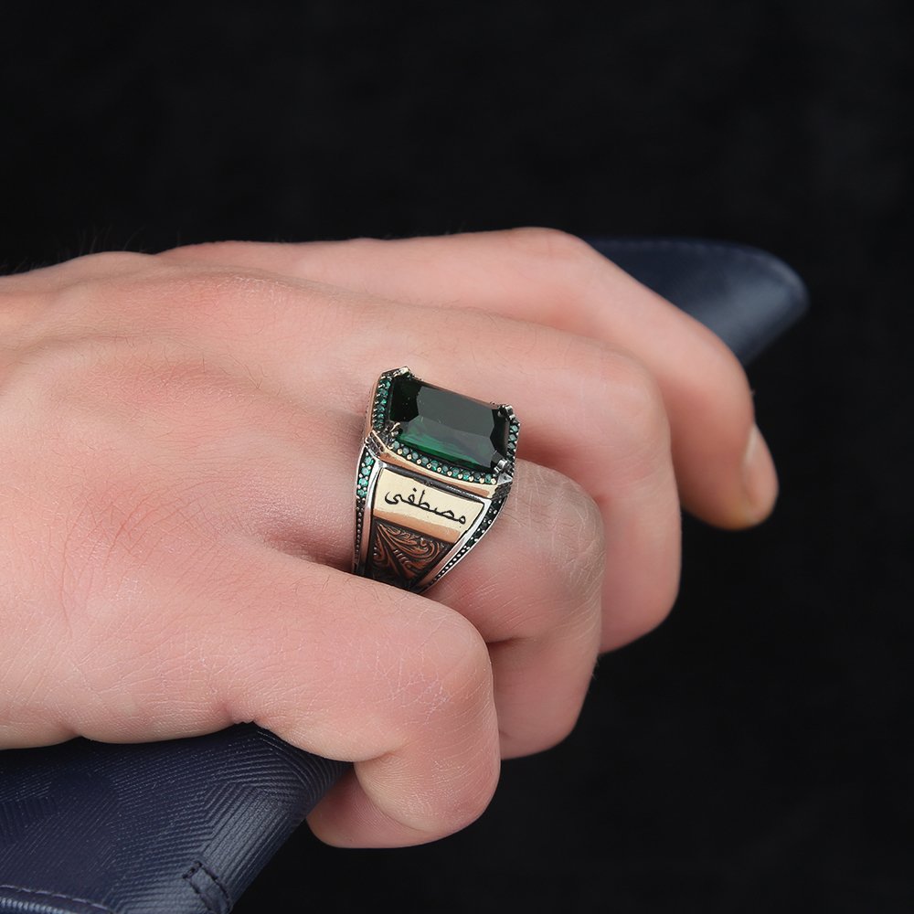 Yeşil Zirkon Taşlı 925 Ayar Gümüş Erkek Yüzük