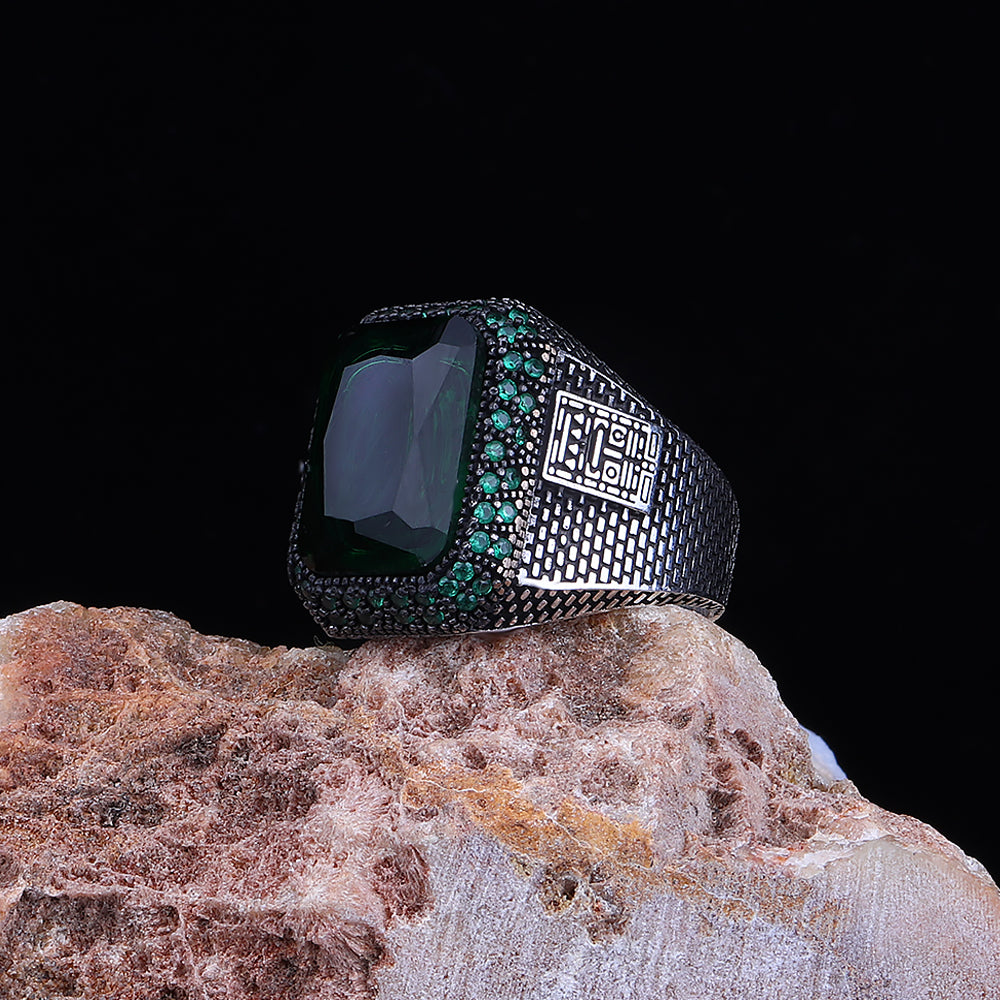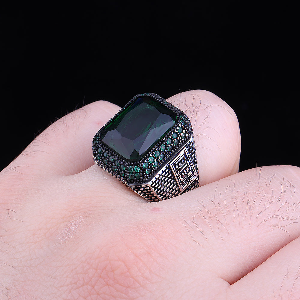 Yeşil Zirkon Taşlı 925 Ayar Gümüş Erkek Yüzük