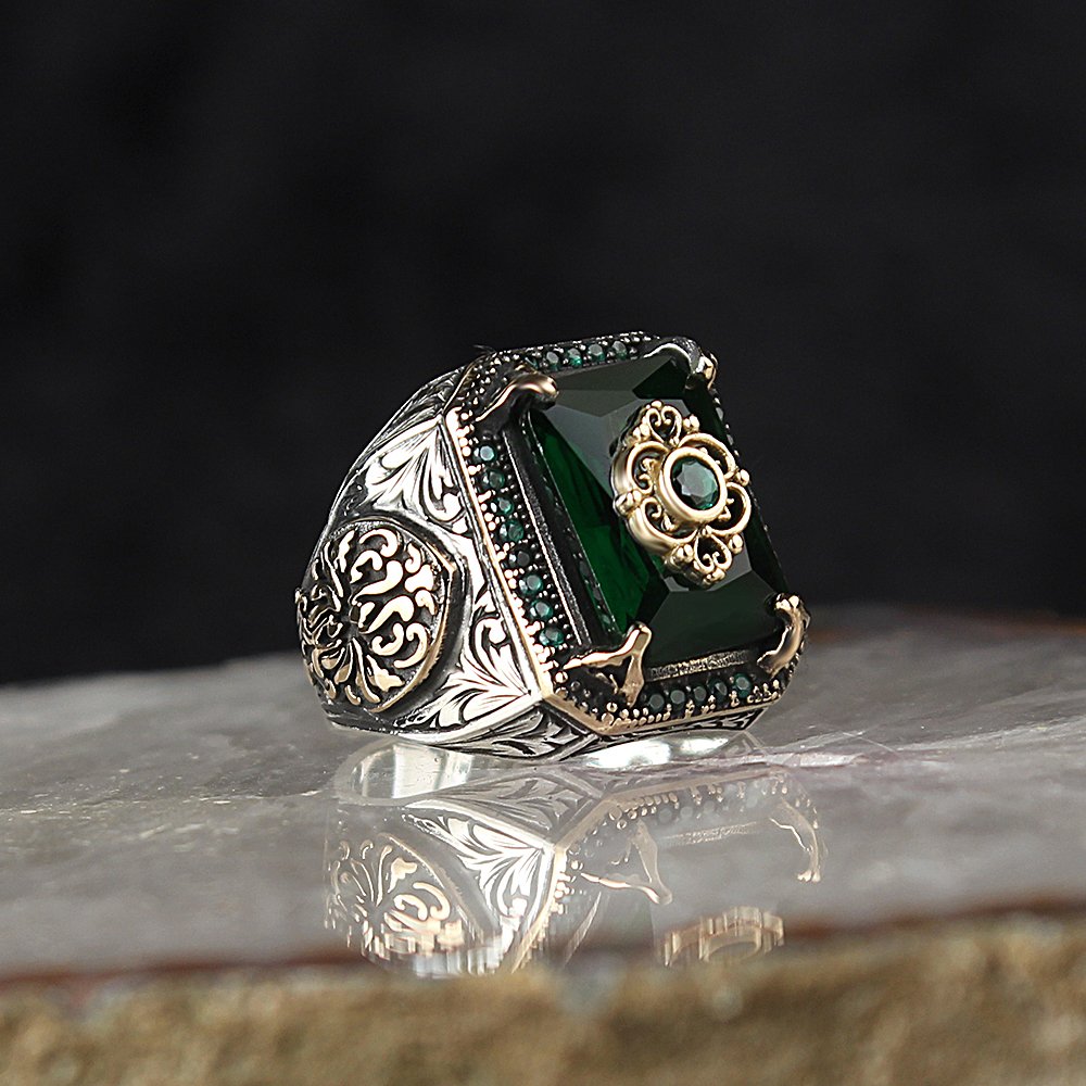 Yeşil Zirkon Taşlı 925 Ayar Gümüş Yüzük